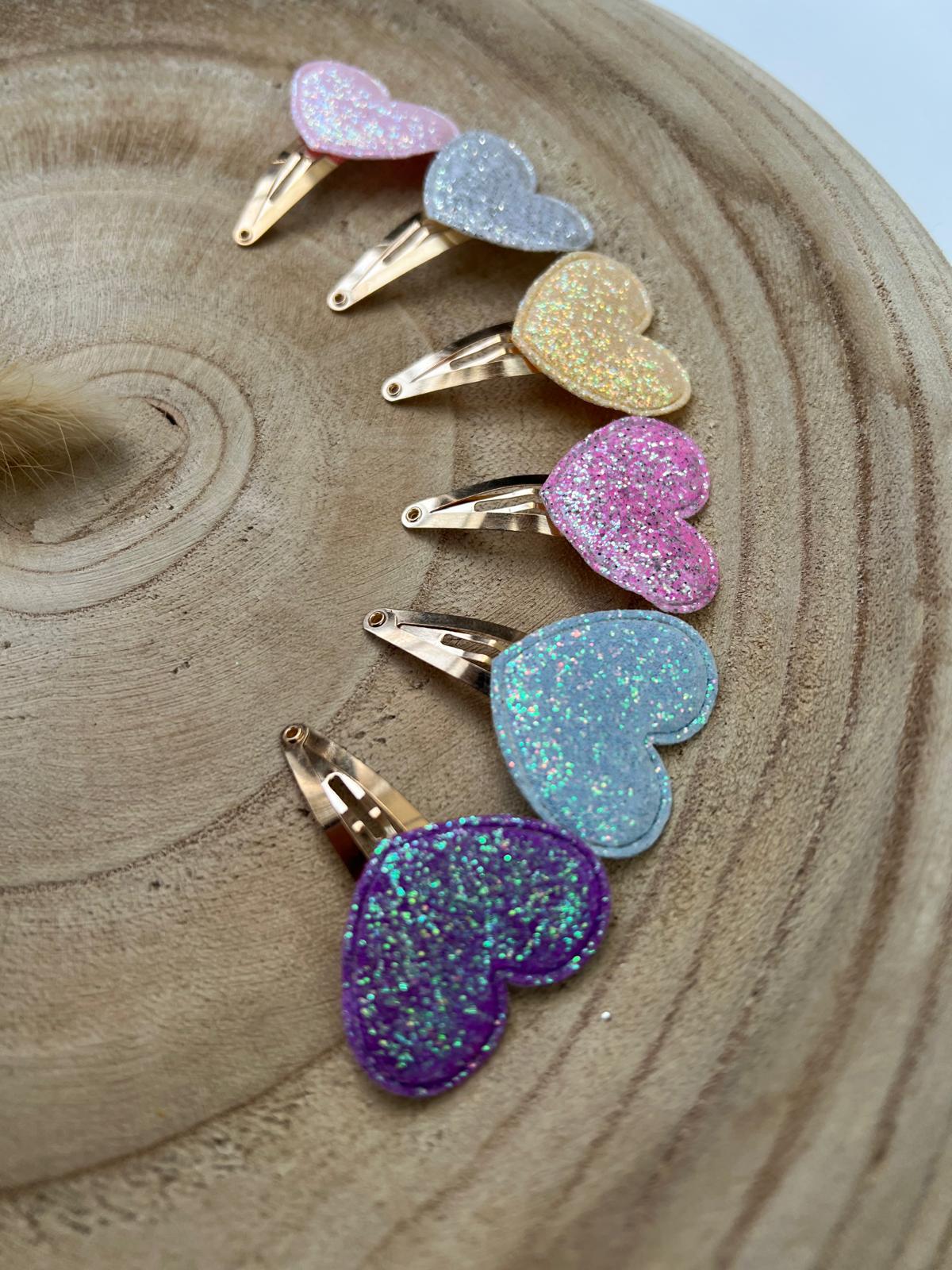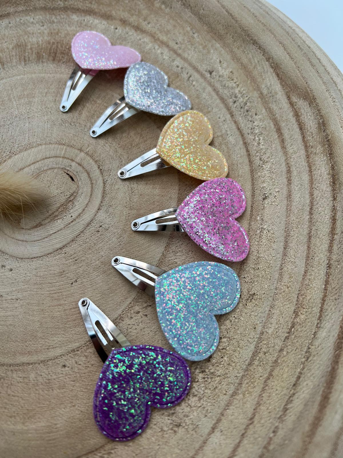Een sprankelend haarspeldje glitter hart dat iedere look nét dat beetje extra geeft. Dit klik-klak speldje van ca. 4 cm is verkrijgbaar in diverse kleuren en ideaal voor dagelijks gebruik of een feestje.