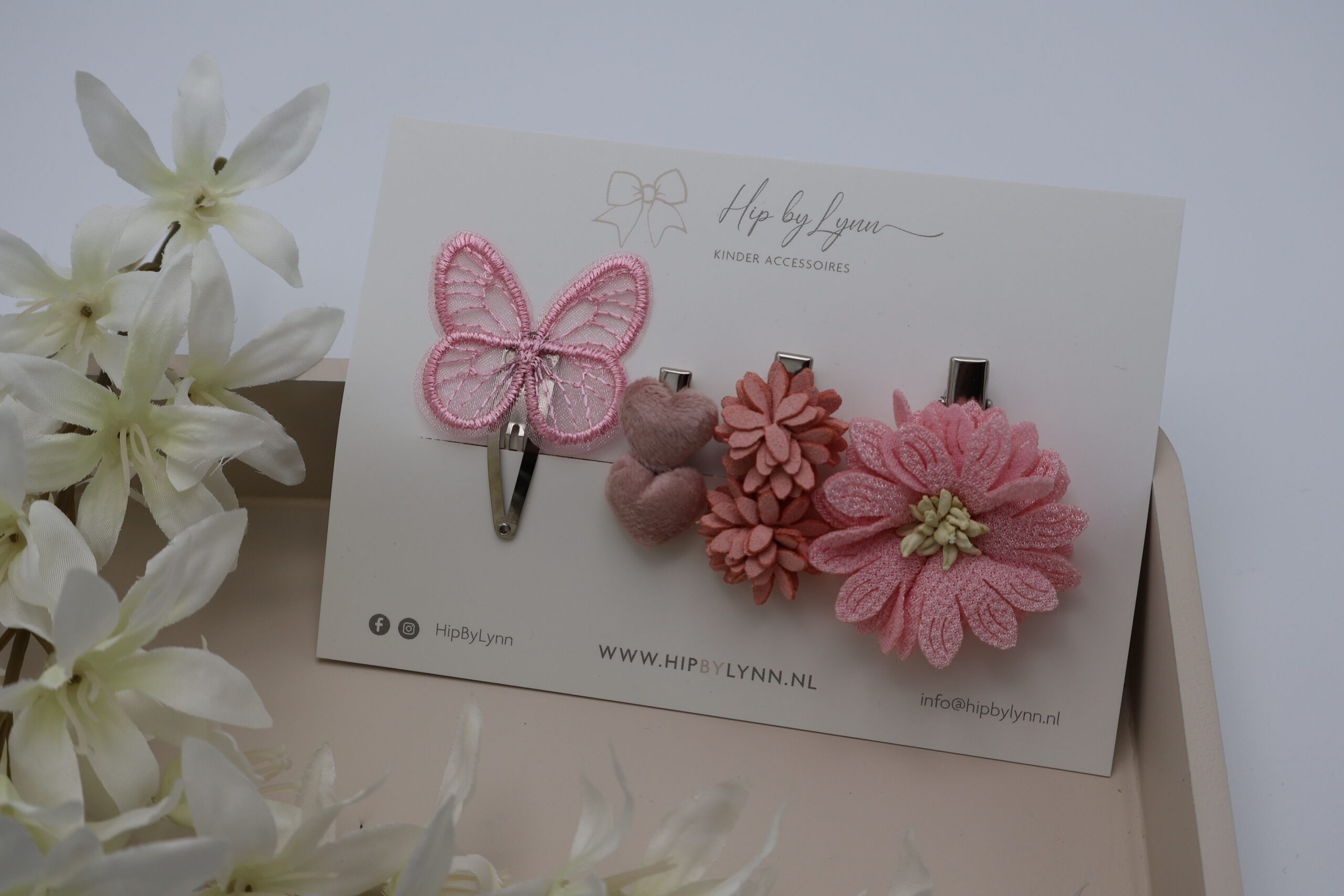 De haarspeldjes set Jasmijn combineert lieve roze tinten met een elegante uitstraling en blijft perfect zitten in fijne haartjes.