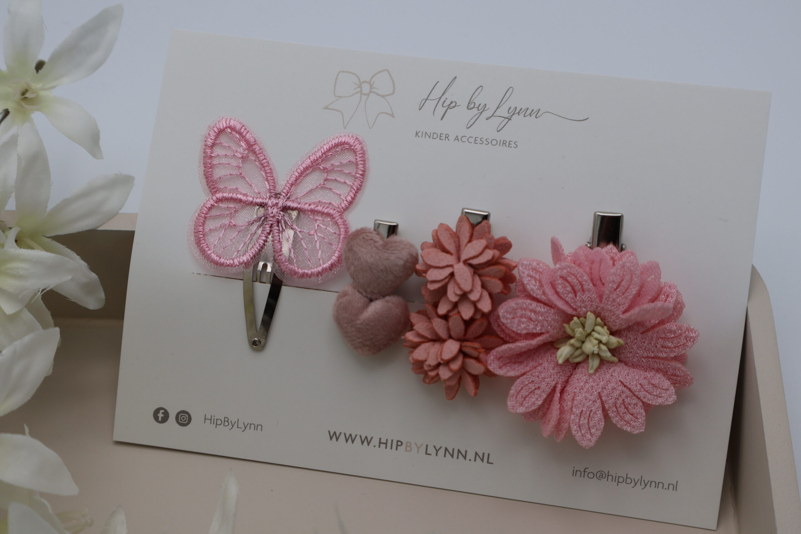 Wat deze set zo bijzonder maakt, is de combinatie van zachte roze tinten en verschillende clip soorten. De klikklak speldjes zijn licht en ideaal voor fijne haartjes, terwijl de alligator clips juist extra grip bieden bij iets dikker haar